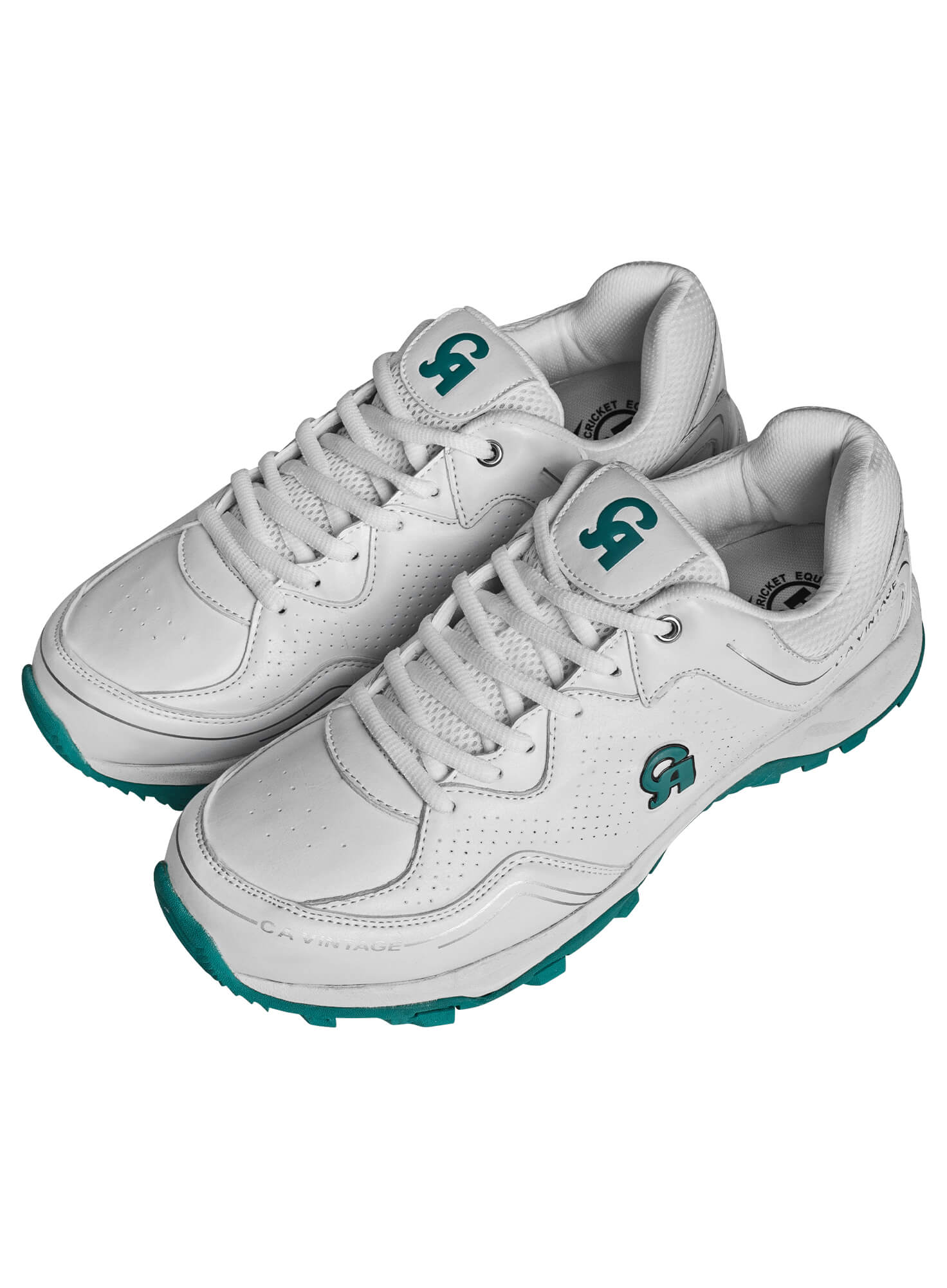 Experience the perfect blend of timeless style with the CA Sports Cricket Shoes (Pro Vintage). Designed for cricketers and athletes wearers alike, these white cricket shoes with a green sole feature a classic silhouette inspired by the iconic modern designs of the 70s and 80s. The upper is crafted from synthetic leather, offering durability and a luxurious feel, while the vent holes and air vents mesh inserts ensure optimal ventilation during intense activities, making them ideal for longer hours of play. The compact fit is perfect for running between the wickets and grounds. The cushioned insole and padded collar ensure superior comfort, reducing foot fatigue during long matches. The air vents mesh panels enhance ventilation, keeping your feet cool and dry even during intense play. Equipped with a high-traction rubber outsole, these shoes provide exceptional grip on both natural grass and artificial turf, ensuring stability and control during quick movements and sudden turns. The Pro Vintage shoes are designed with reinforced toe and heel areas, offering added protection and support where it's needed most. The lightweight construction allows for agility without compromising on sturdiness.